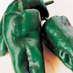 This pepper is a dependable producer of 7 inch long by 3 inch wide hot peppers. The fruits turn from green to red when mature. Mildly hot, with a bite. May need staking because of the heavy yields. Used in Mexican cooking, excellent for making chili rellenos and for canning. Good disease resistance. As with all hot peppers, remember to wear gloves or wash your hands thoroughly after picking or preparing these fruits.